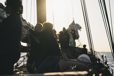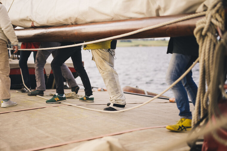 Wir lernen von einer erfahrenen Crew, wie wir die Segel setzen und